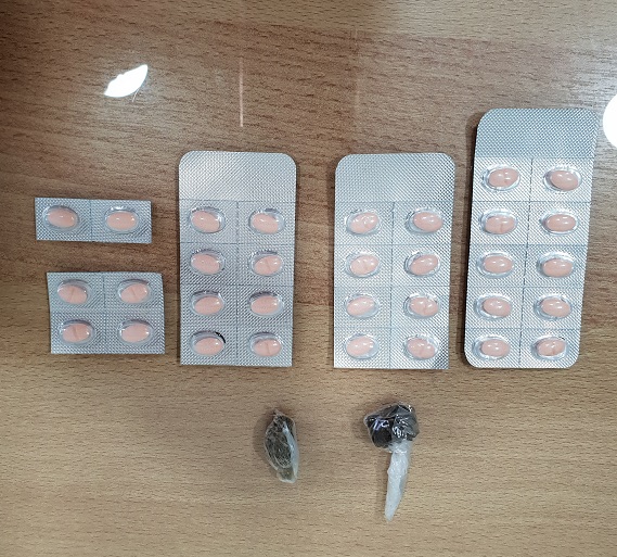 μικροποσότητες ηρωίνης και κάνναβης, -32- ναρκωτικά δισκία, -4- μαχαίρια, -3- φορητοί πομποδέκτες και -1- βάση ασυρμάτου στην Κορινθία και